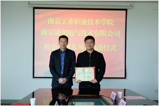10月26日,康尼電氣與南京工業(yè)職業(yè)技術(shù)學(xué)院在校方簽訂戰略合作框架協(xié)議并舉行授牌儀式。我司總經(jīng)理馬濤、副總經(jīng)理邱明榮、技術(shù)總助丁猛、校方校長(cháng)謝永華、副校長(cháng)崔新明等領(lǐng)導代表參加了此次活動(dòng)。